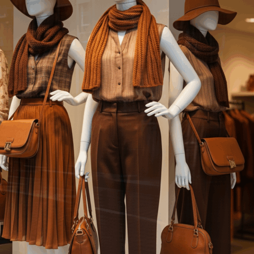 あまりにも暑すぎる今年の秋。 ショーウインドウやディスプレイの見せ場は、茶系、デザインブラウス、ノースリーブ(夏デザイン・秋色・秋素材)のトップス中心でスタイリングをまとめてみる。 キチンとして見えるのに抜け感がある素敵さ!を表現しましょう。