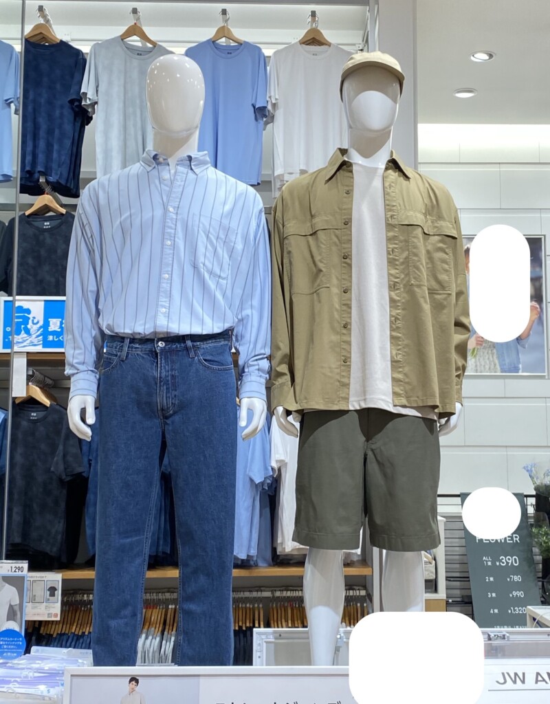 - 着こなしの提案がない: 袖はそのまま、襟も普通。せっかくマネキンがあるのに、「どう着たら素敵か」という工夫が伝わってきません。