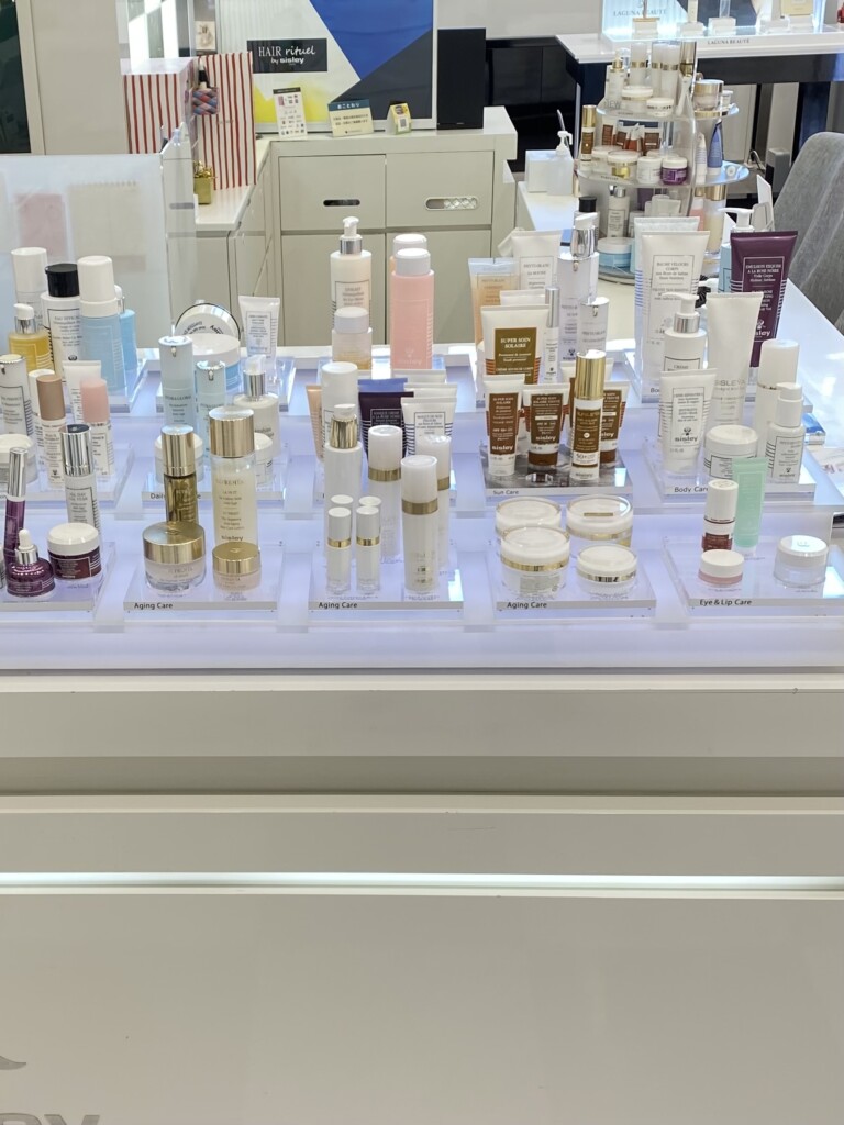 こちらは化粧品屋さん。アクリルの什器が商品のサイズに落とし込まれています。