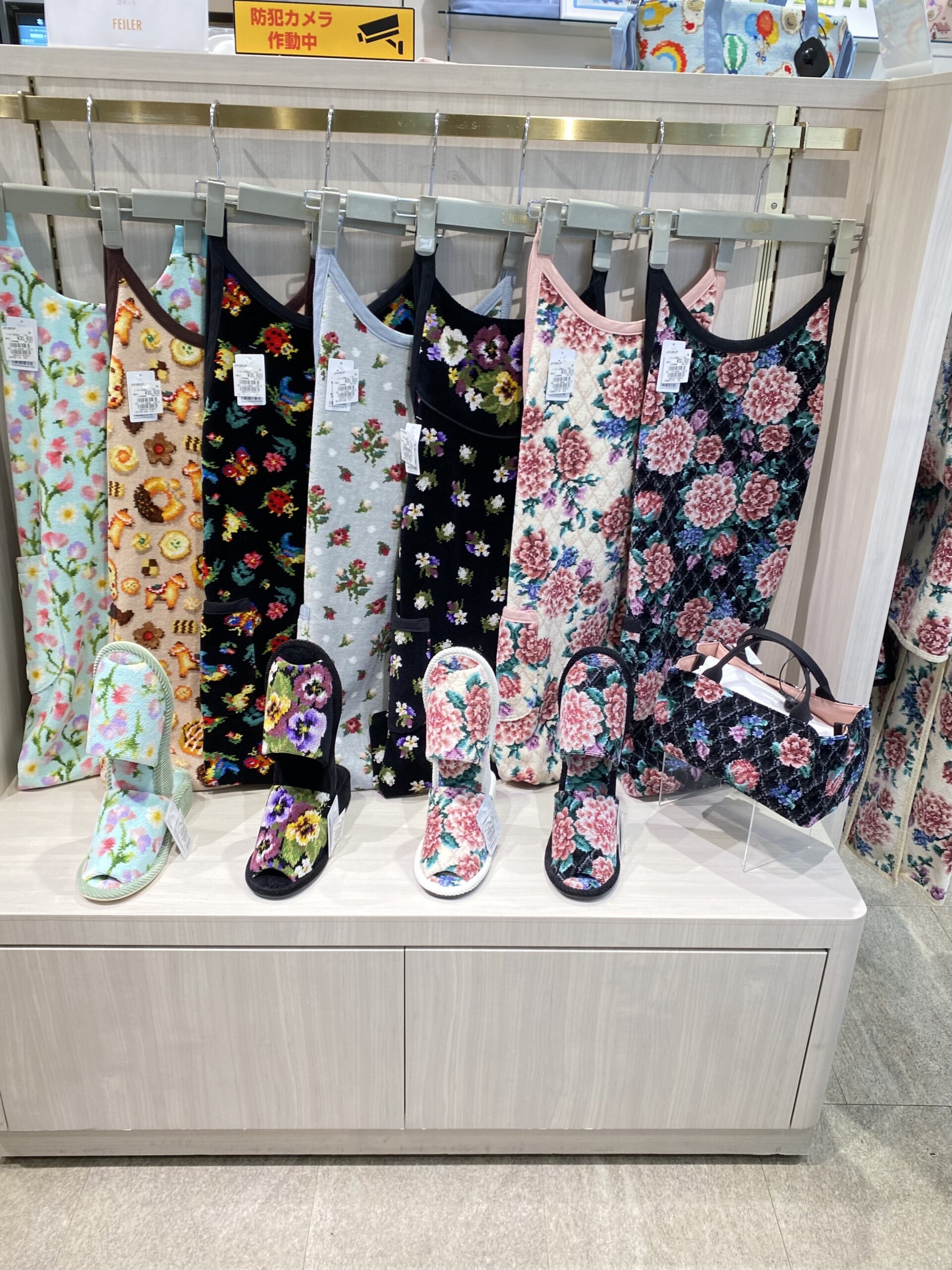 おそらくエプロンとスリッパ、そしてバッグが同じ柄で並んでいます。